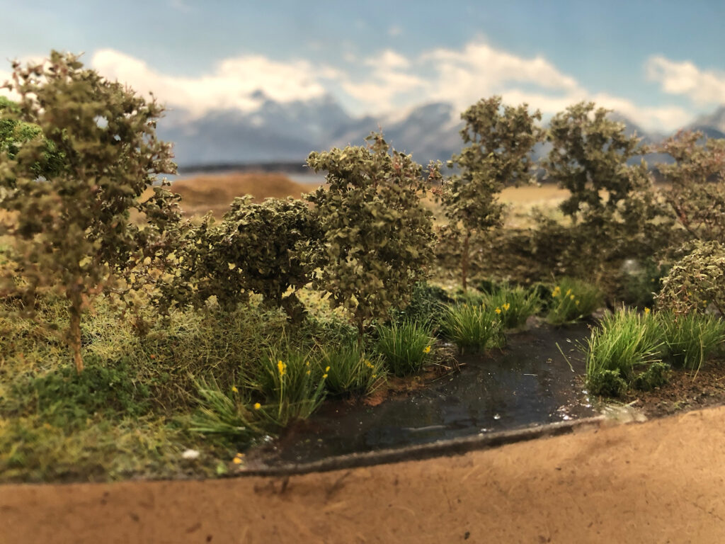 Für die Wasserfläche wurde Still Water von Vallejo verwendet, ein Produkt, das sich nicht bewährt hat, denn mit der Zeit bildete sich auf der Oberfläche ein matter, weißlicher Belag.