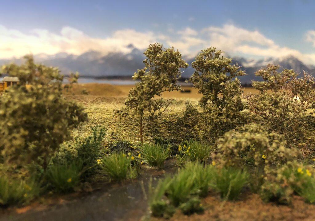 Für eine Ausstellungsanlage in Rodgau zur US-Convention war es nötig, zwei kleine Kurvenstücke zu bauen, um ein großes Oval schließen zu können. Links und rechts vom Modul Mesa angeordnet suchte ich auch Vorbilder nördlich und südlich der Ortschaft Mesa im Staat Washington und fand sie mit Hilfe von Google Streetview. Obwohl beide am gleichen Flussbett liegen, zeigt der eine ein ausgetrocknetes Bett, während der andere etwas Wasserfläche aufweist.
