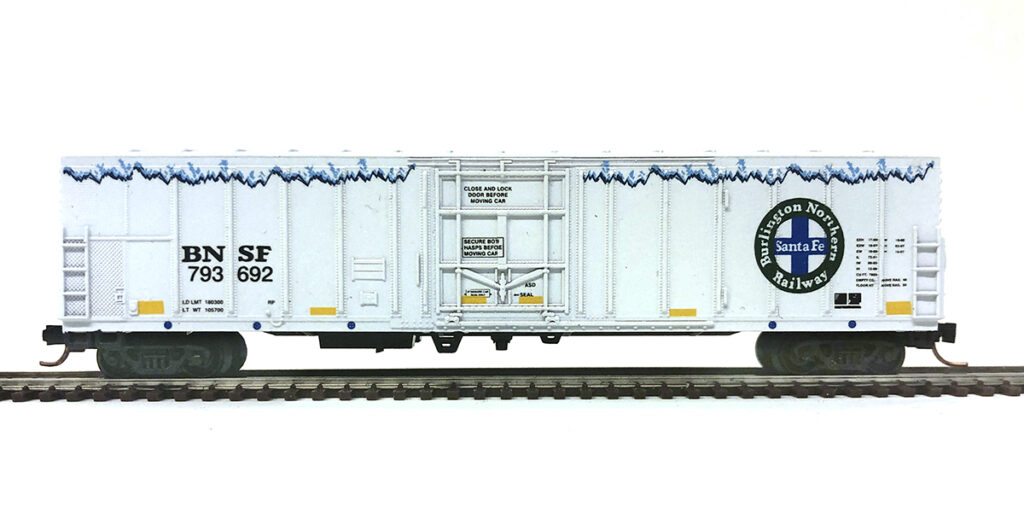 Der schneebedeckte 57′ Kühlwagen von Athearn gefiel mir gut und ich habe ihn überstürzt gekauft, ohne vorher das Vorbild zu prüfen. Dieses ist jedoch ein wesentlich größerer 82′ Kühlwagen, den es inzwischen als Modell gibt. Da war das Urteil über den Fooby schnell gefällt: Ab in die Verkaufskiste. Die gleiche Form wurde Opfer mehrerer falscher Lackierungen, von denen Tropicana wohl die bekannteste ist.