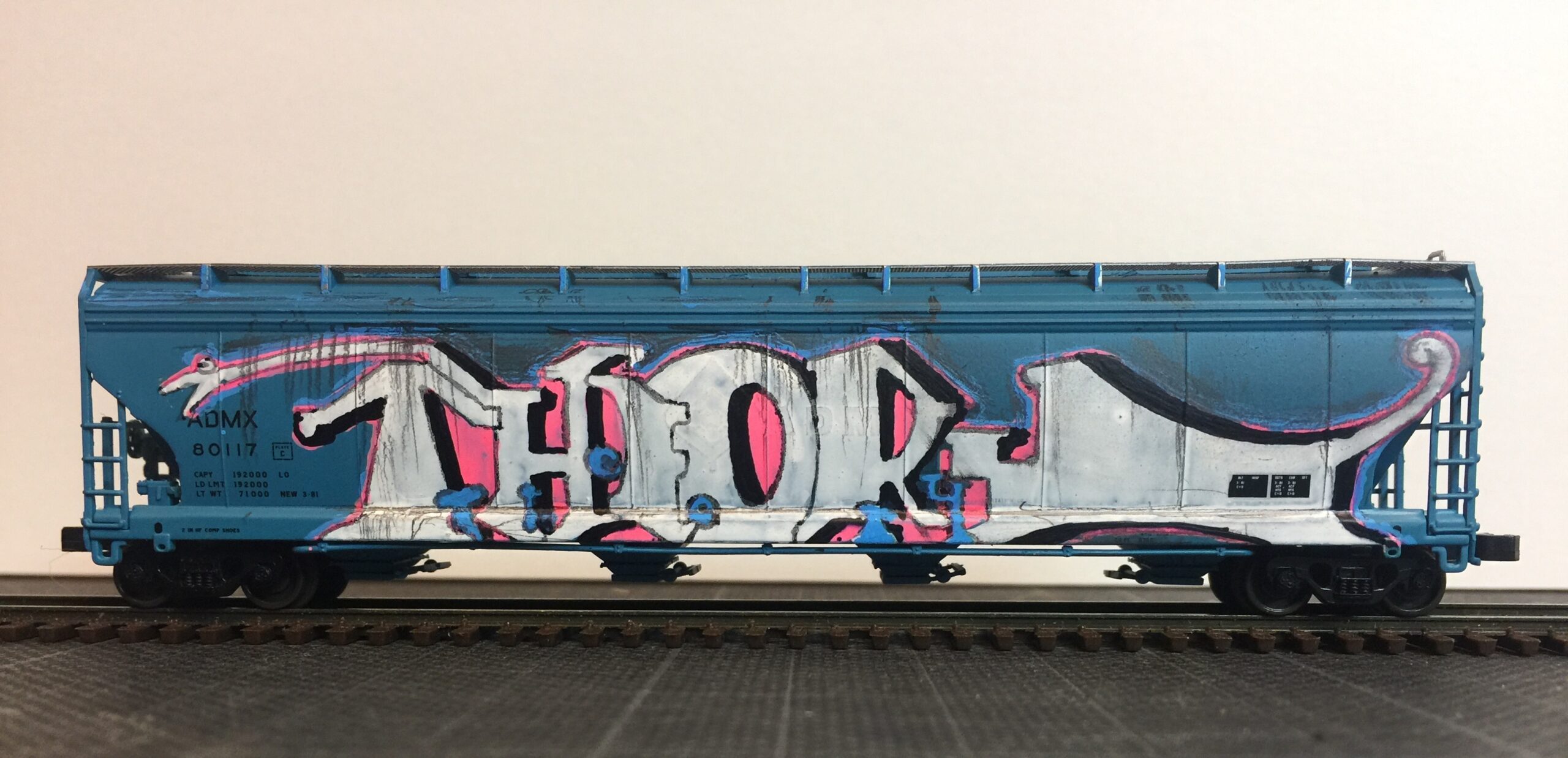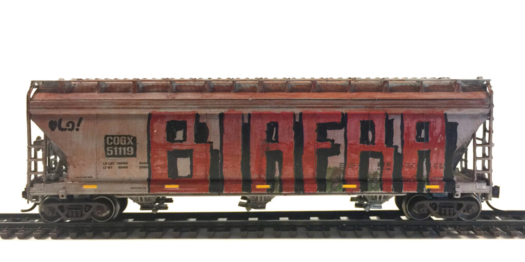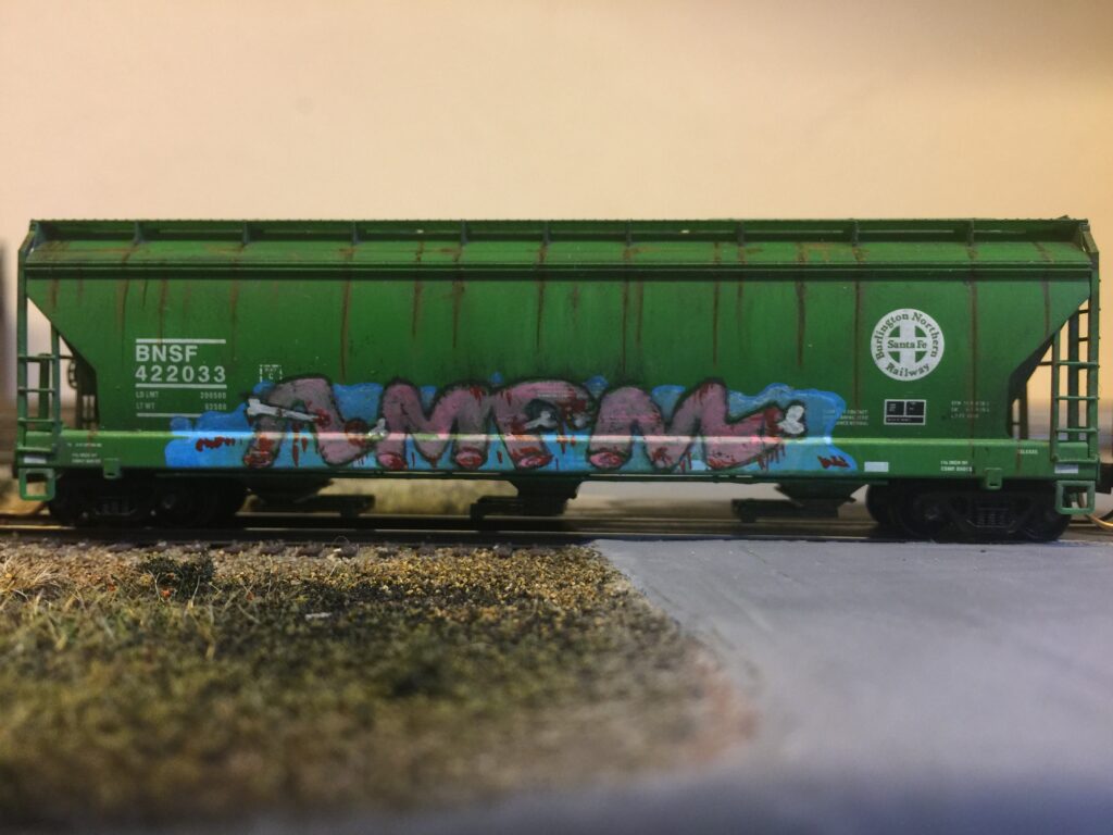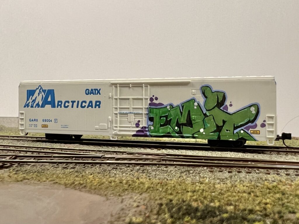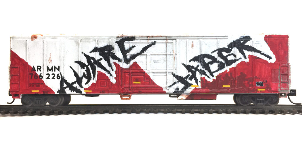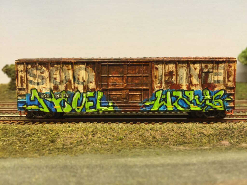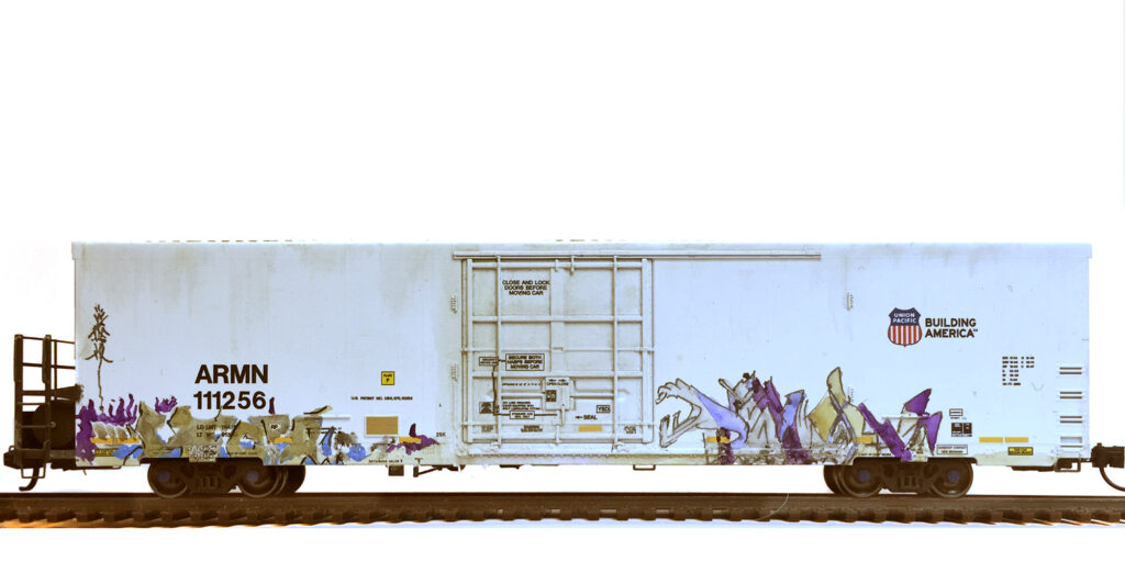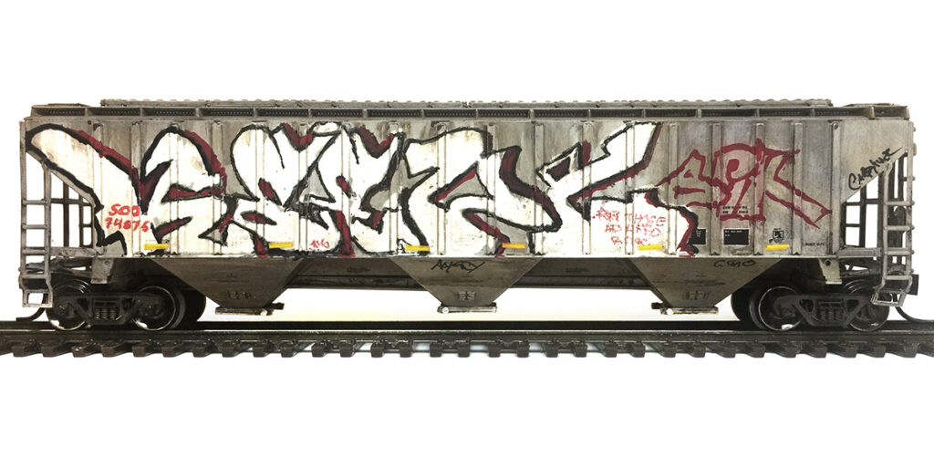„AWARE, who died in 2021, was also co-founder of Bumfights which they later sold the rights to for 1.5 million. As a founding member of the art collective Indecline, his worked surpassed typical graffiti to be better classified as American contemporary art, street art and activism.“ ARMN und JABER haben aus der Wagennummer (725028 beim Vorbild) mit weißer Farbe eine Outline gemacht, was ich Mitspielern nicht antun wollte.