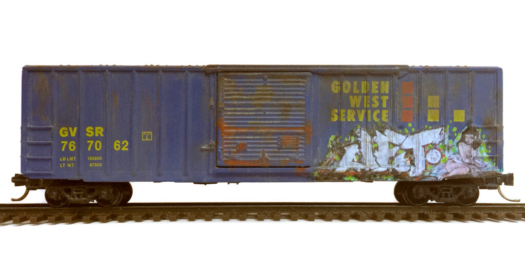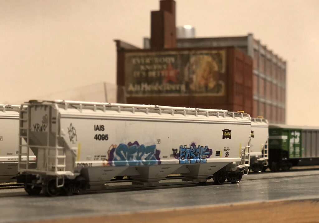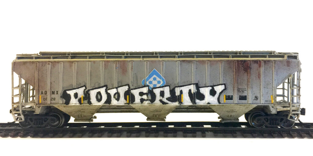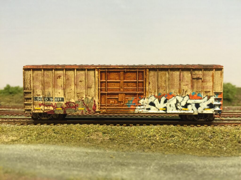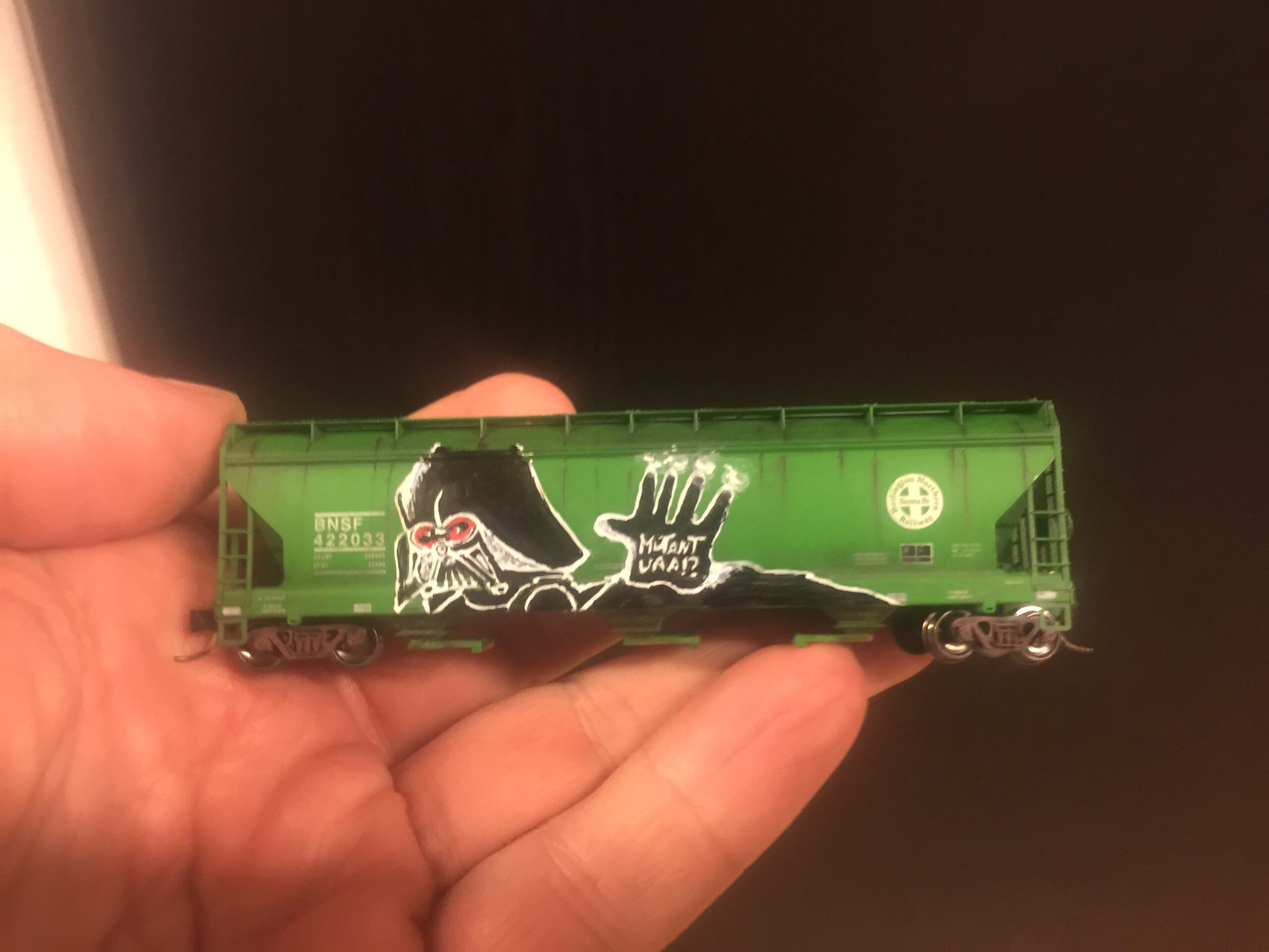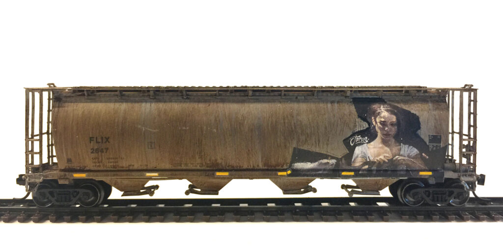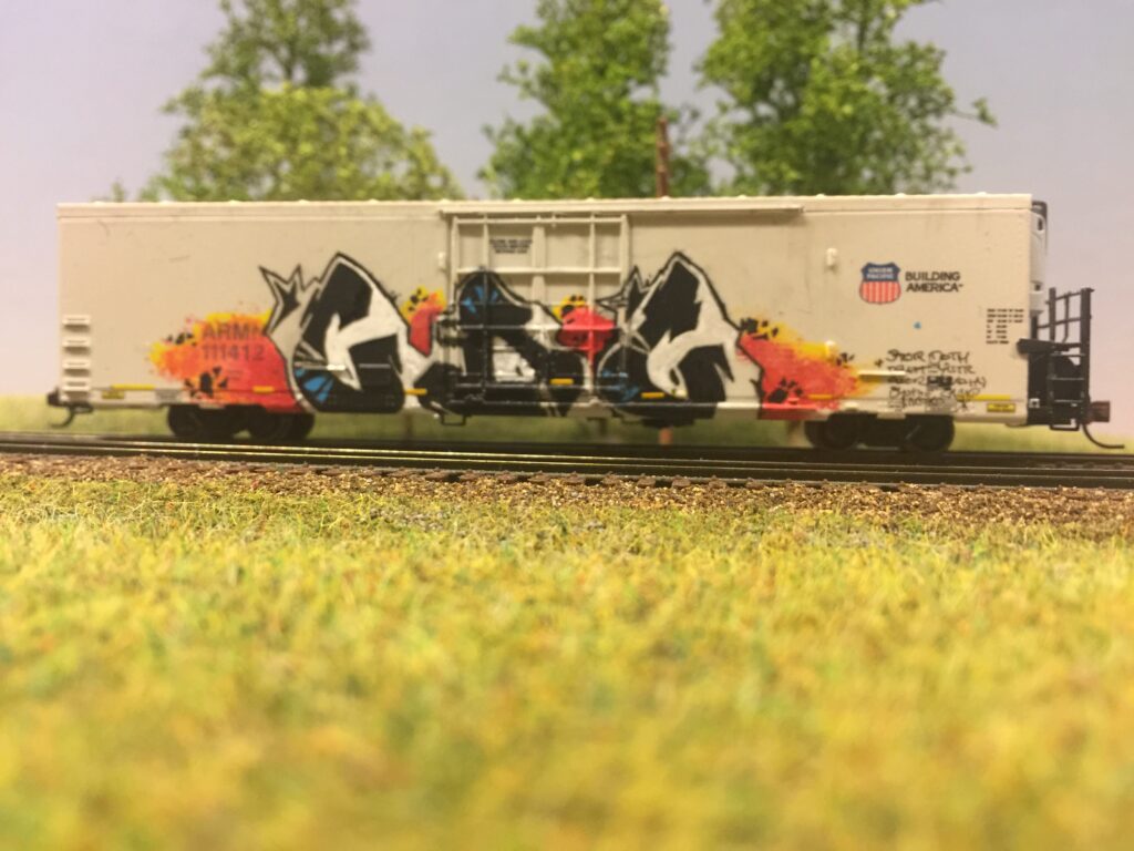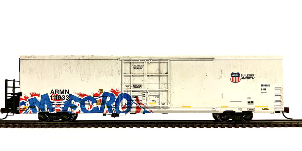 „AWARE, who died in 2021, was also co-founder of Bumfights which they later sold the rights to for 1.5 million. As a founding member of the art collective Indecline, his worked surpassed typical graffiti to be better classified as American contemporary art, street art and activism.“ ARMN und JABER haben aus der Wagennummer (725028 beim Vorbild) mit weißer Farbe eine Outline gemacht, was ich Mitspielern nicht antun wollte.