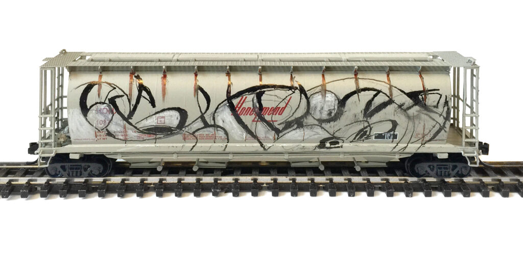 Proto ein CRYX 6138 „Saddle Creek“ with a work by ICH. „The only differences between me and writers who wrote first and found trains later was that, as soon as I started writing, I already knew all these great spots from years of wandering the tracks, and that I was already in tune with the idea of having your stuff roll around to different places.“ ICH