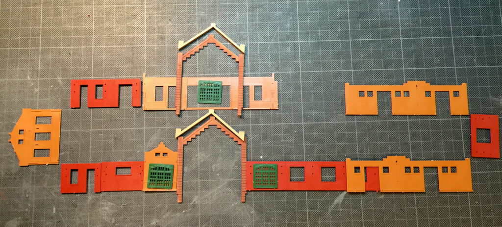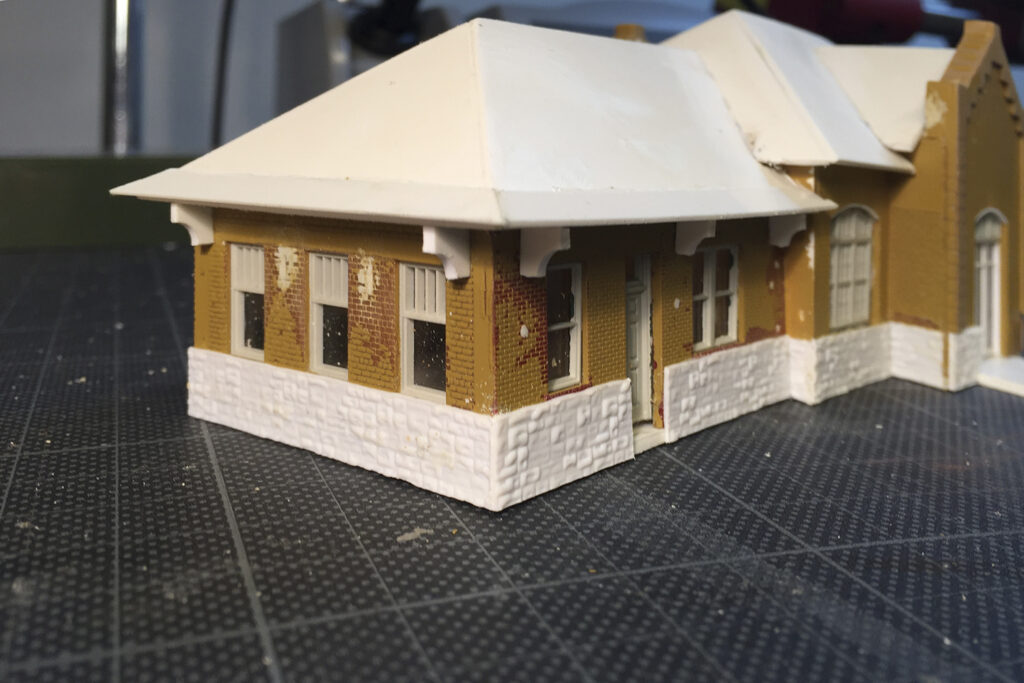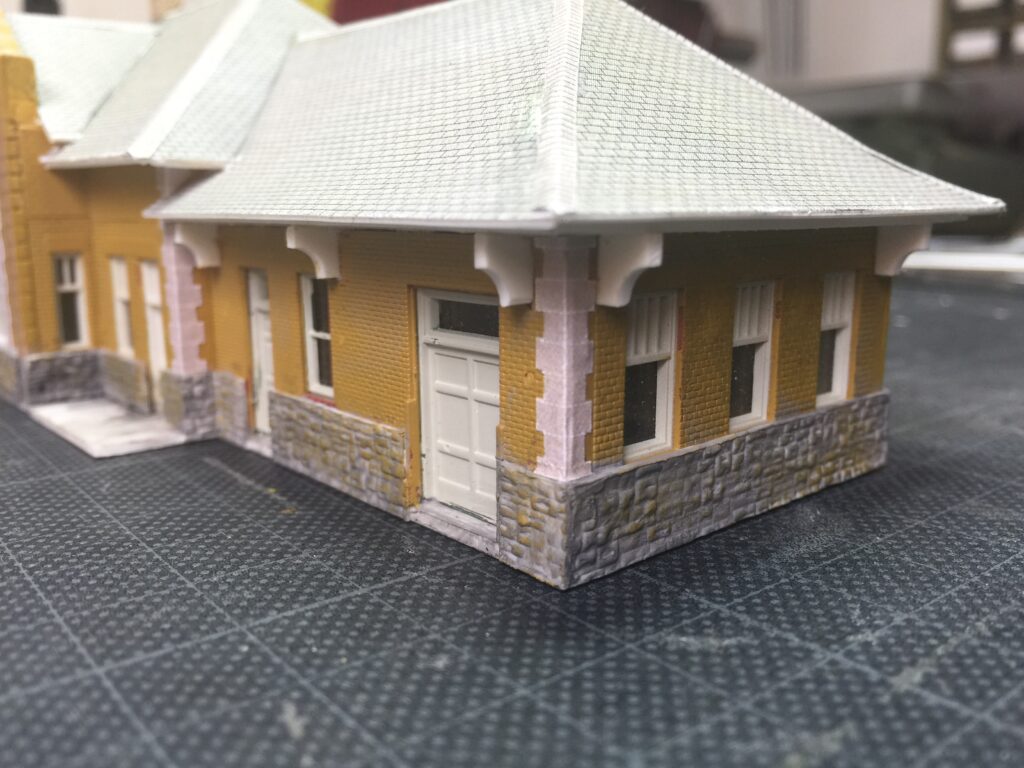 Die Idee bestand darin, das Gebäude aus zwei Walthers Cornerstone-Gebäuden zu kitbashen, und zwar dem Santa Fe-Style Brick Depot w/Freight House